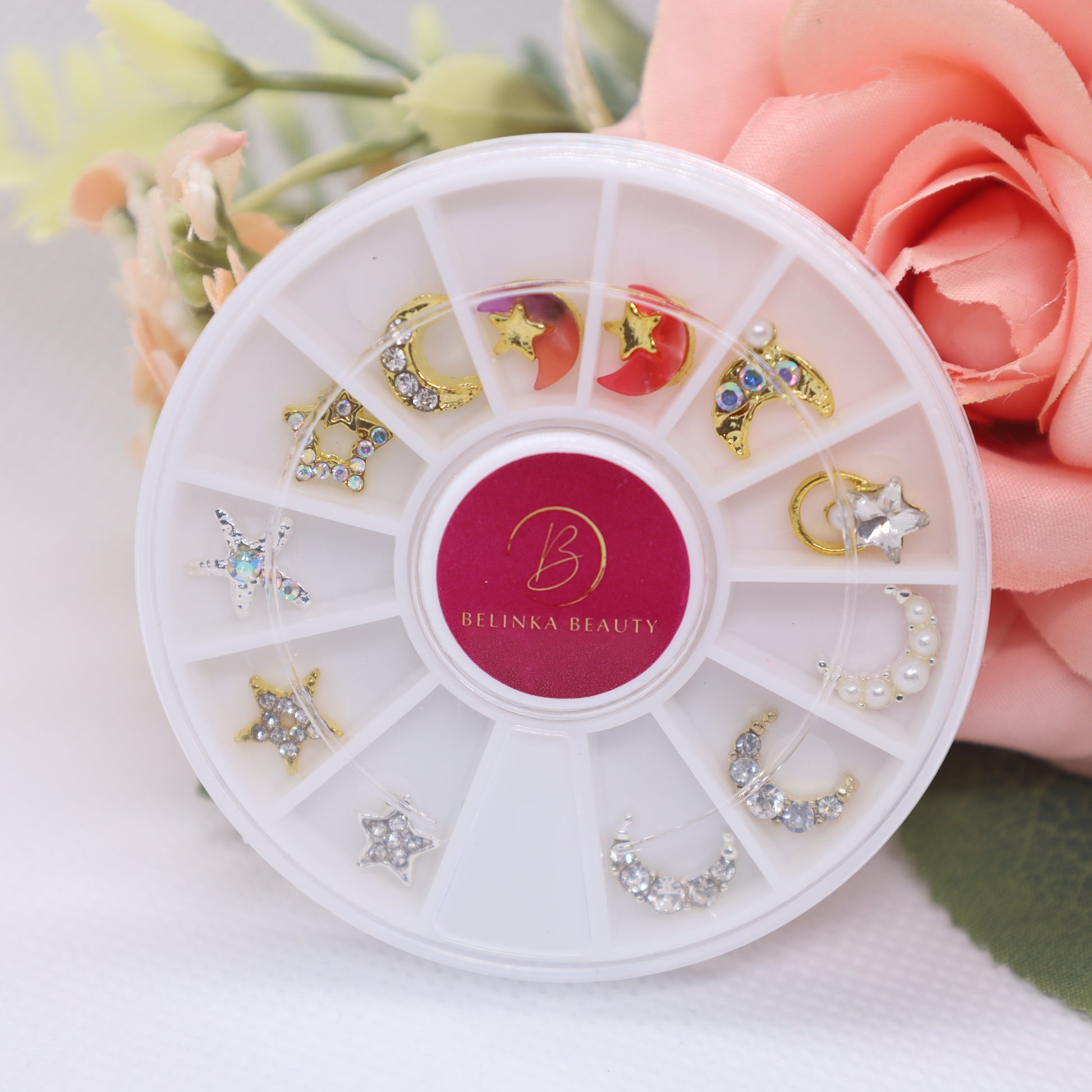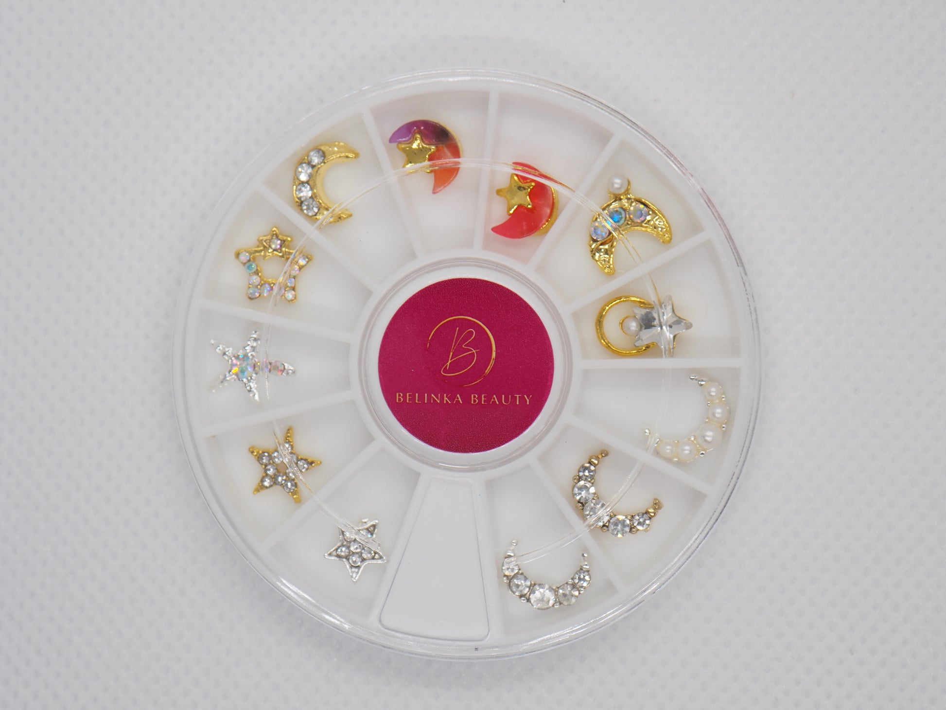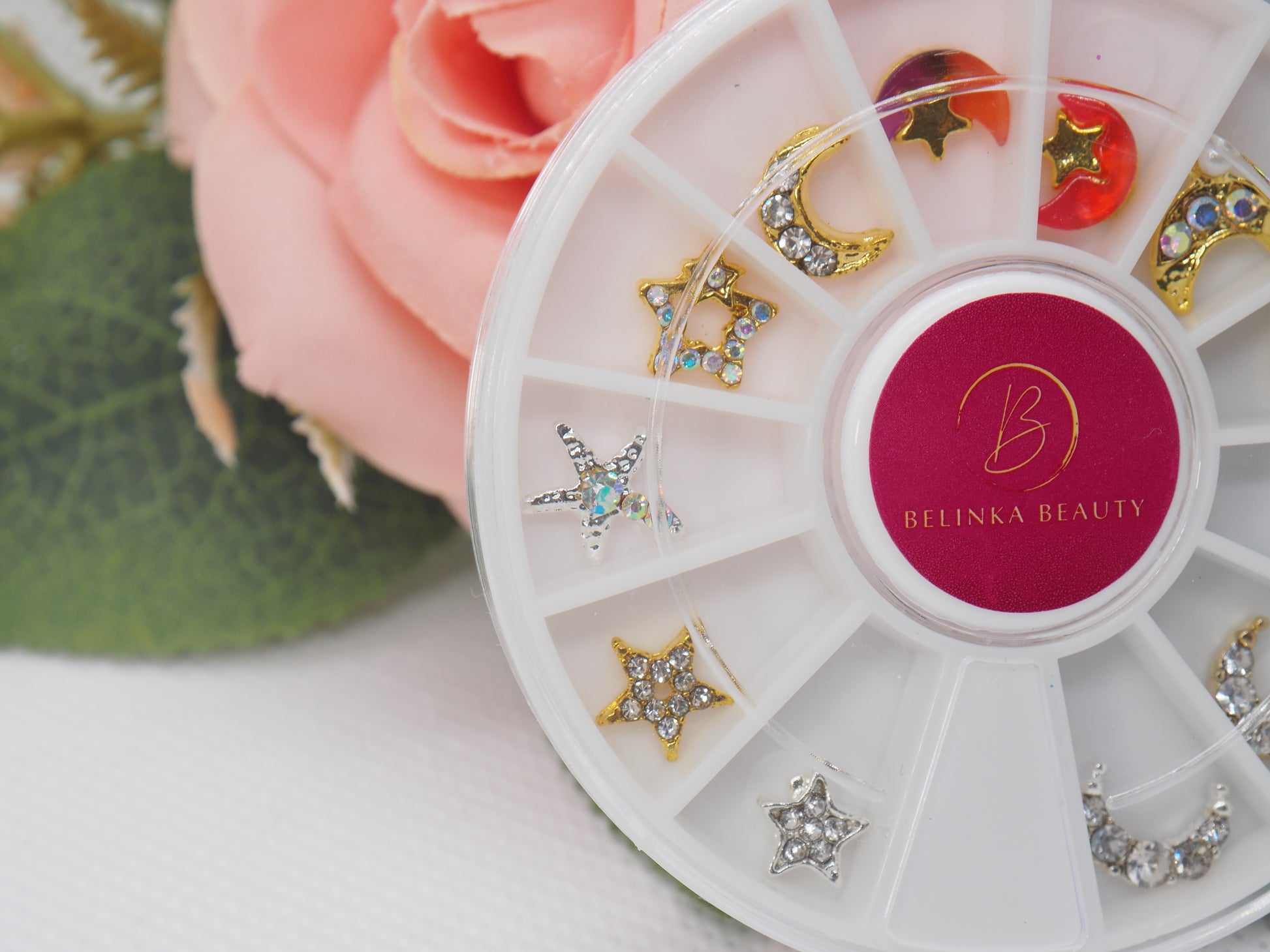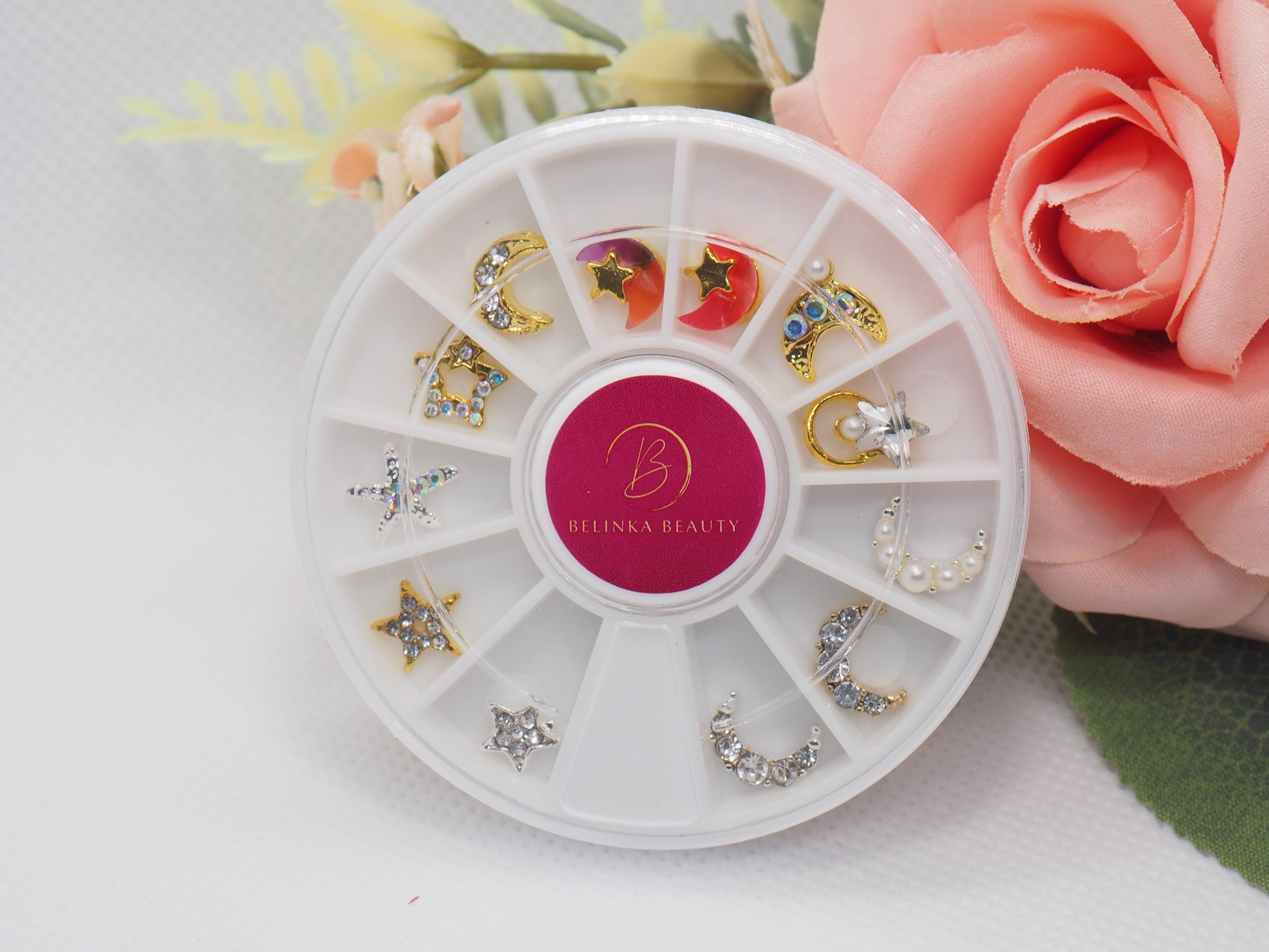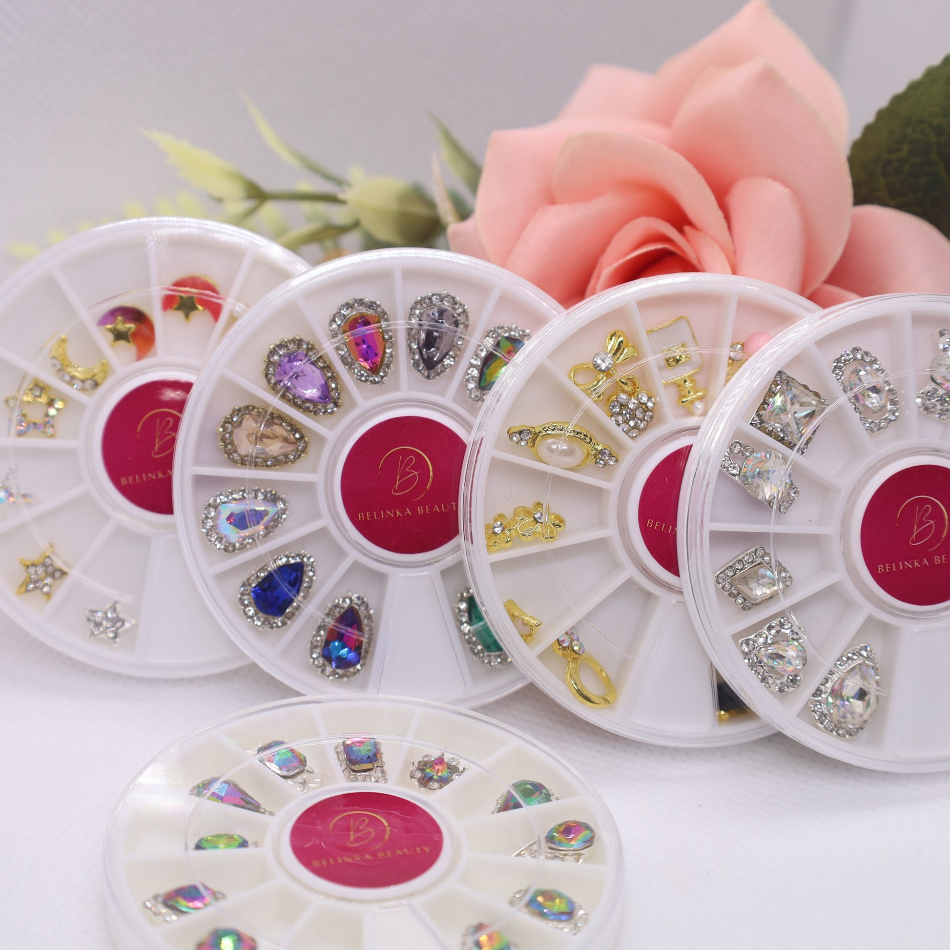 Das Karussell enthält 12 wunderschöne hochwertige Nagelschmuckstücke. Sie sind von unten sanft abgerundet, um sich besser an den Nagel anzupassen. Steine unterschiedlicher Art und Größe haben ein helles und klares Aussehen und einen diamantähnlichen Schliff, der deutliche Reflexe erzeugt. Die Mischung hochwertiger Metalle garantiert, dass der Schmuck lange Zeit glänzend und leuchtend bleibt, ohne dass es zu nennenswerten Farbveränderungen kommt. Es verdunkelt nicht, es wird nicht schwarz, es läuft nicht an und vor allem bleibt es schön bis zur nächsten Nagelumarbeitung (mit unserem Iconic Fixing Gel).