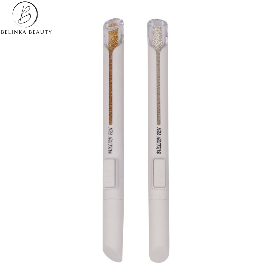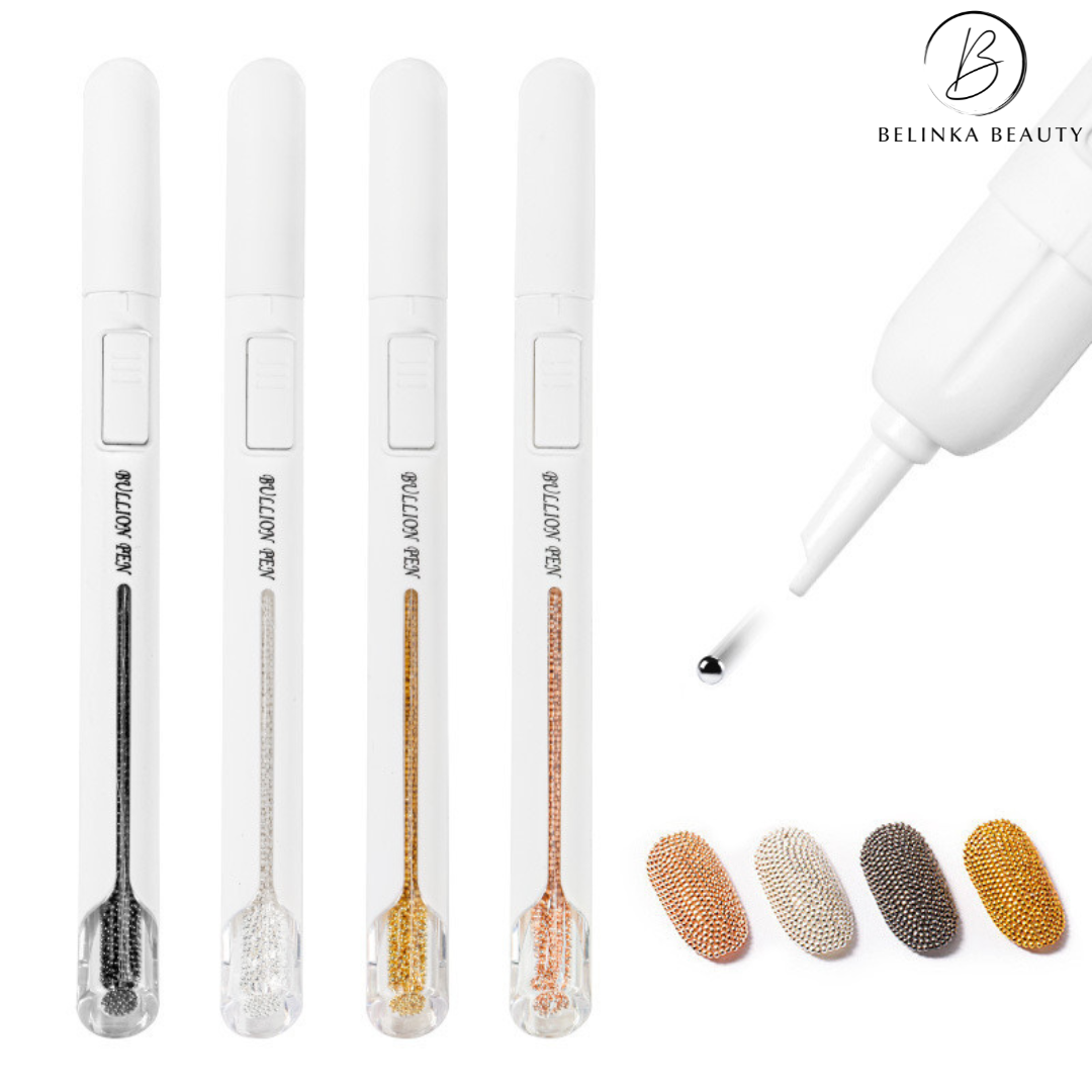 The body is made of a plastic pen that fits beautifully in the hand and is easy to handle. At the touch of a button, exactly one caviar bead falls out each time, which you can place just where you want with the detailed shaped tip. The caviar beads are made of high quality metal, so it won't happen that the caviar coating melts into the gel/lacquer, causing the caviar to lose its color and discolor the top coat or gel.