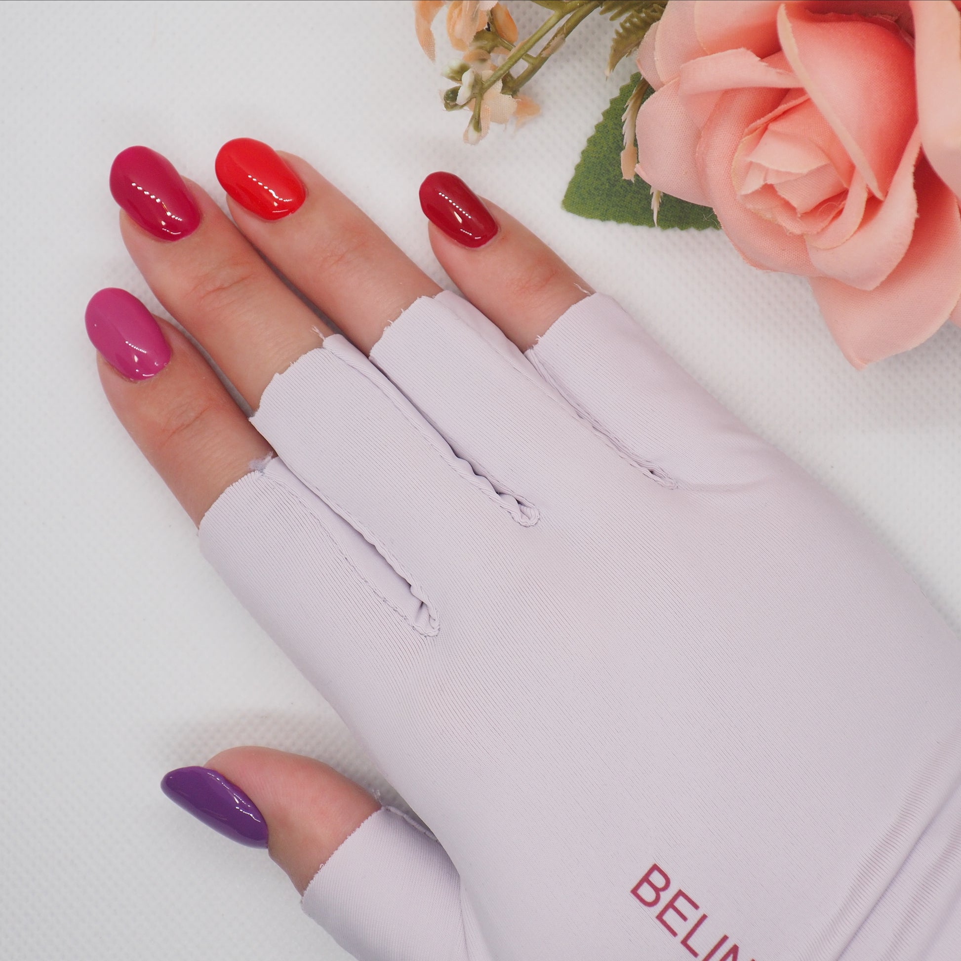 Fialové UV ochranné rukavice na manikúru s UPF 50+